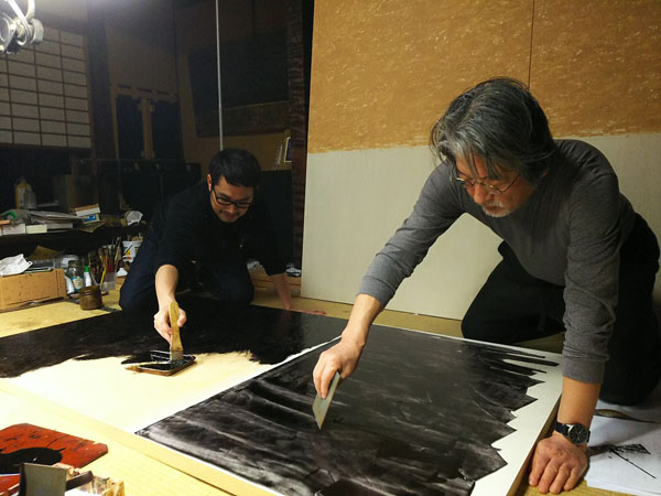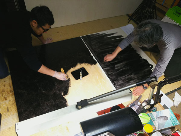 今回の大作制作は一応父との共作という形なので、3回の地漆塗りの作業は父に手伝ってもらいました。