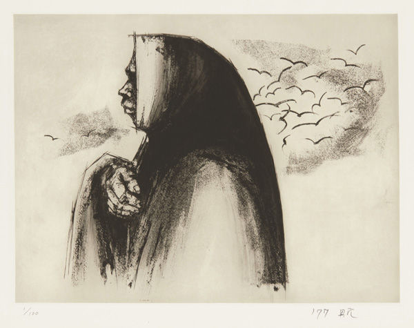 小野具定先生は創画会で活躍する日本画家でしたが1977年の「現代と声」企画で初めて版画制作に取り組まれました。刷りを担当されたのは赤川勲さんです。