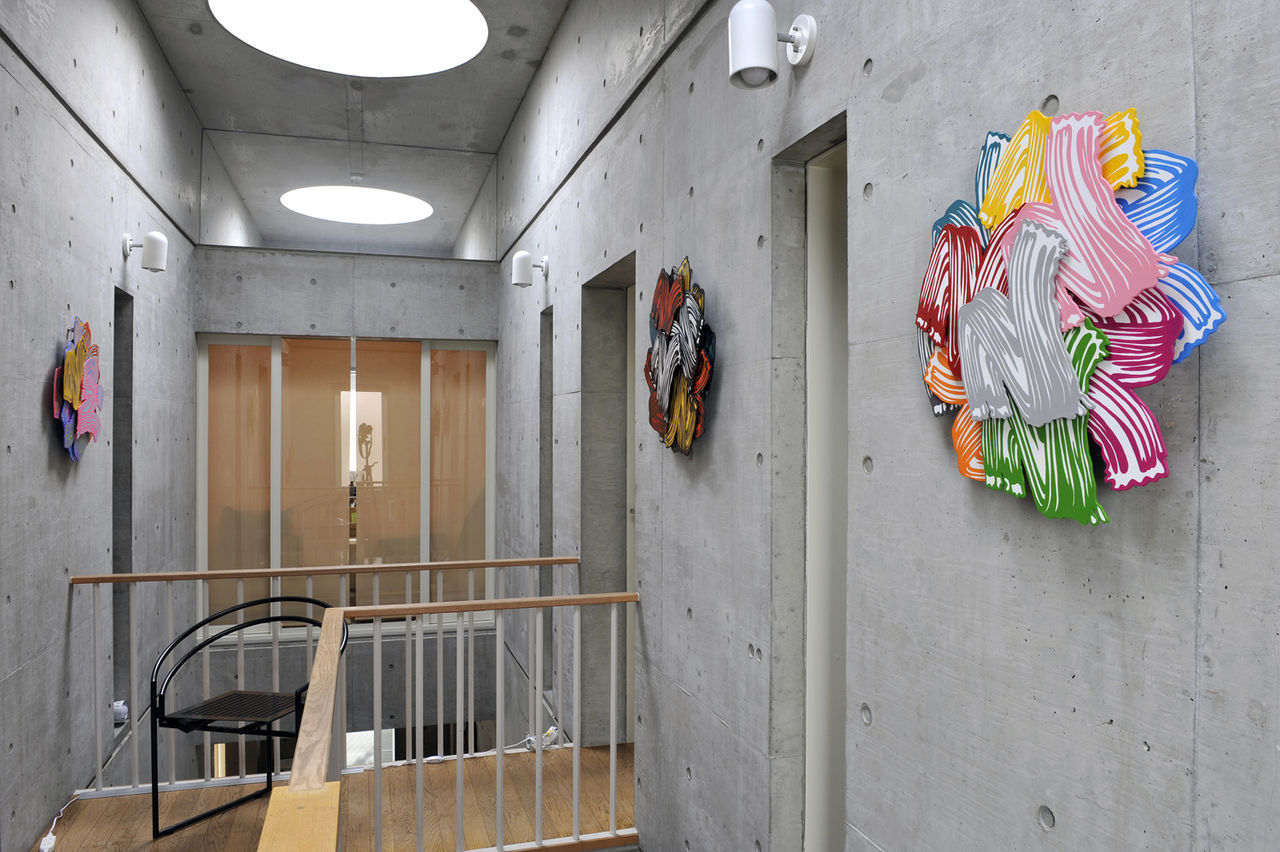 昨年までは青山にギャラリーがありましたが、昨年、日本の素敵な近現代家屋に引っ越して、より個性的な展示が演出され、安藤忠雄の建築に似た、グレーの壁に作品を飾っていただき、作品がより際立つという評価でした🤗 特にDMはがきのメインデザインが非常に好評を受けました😘