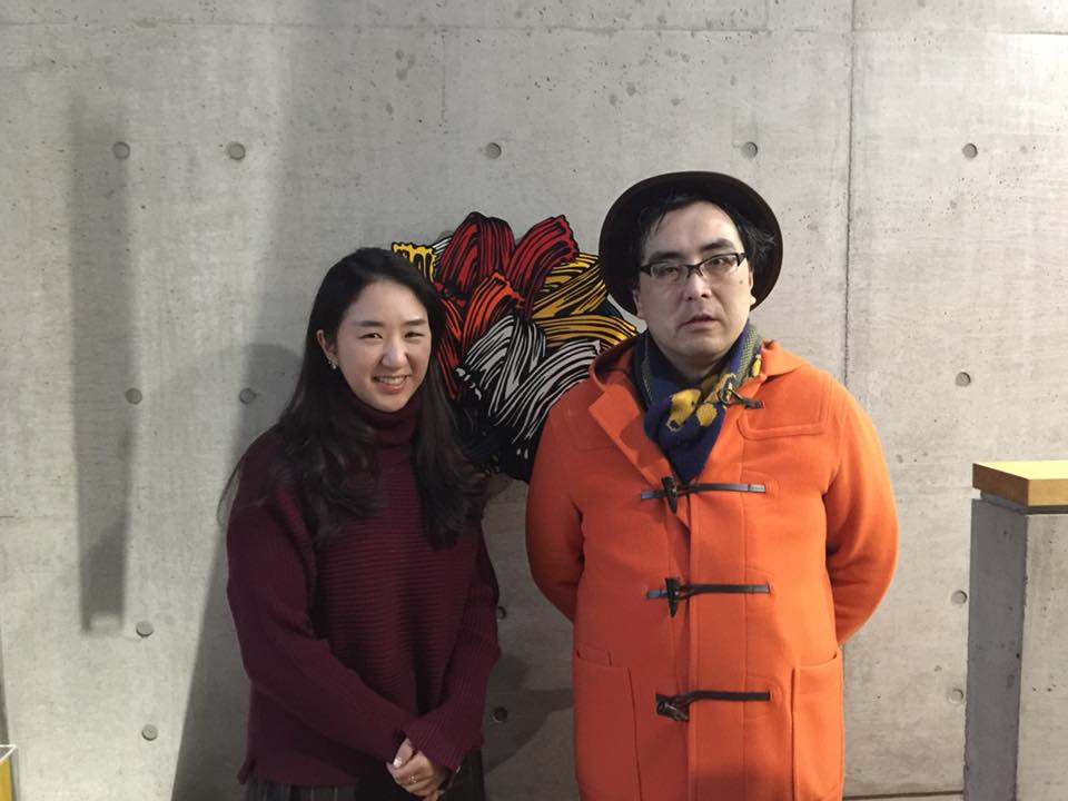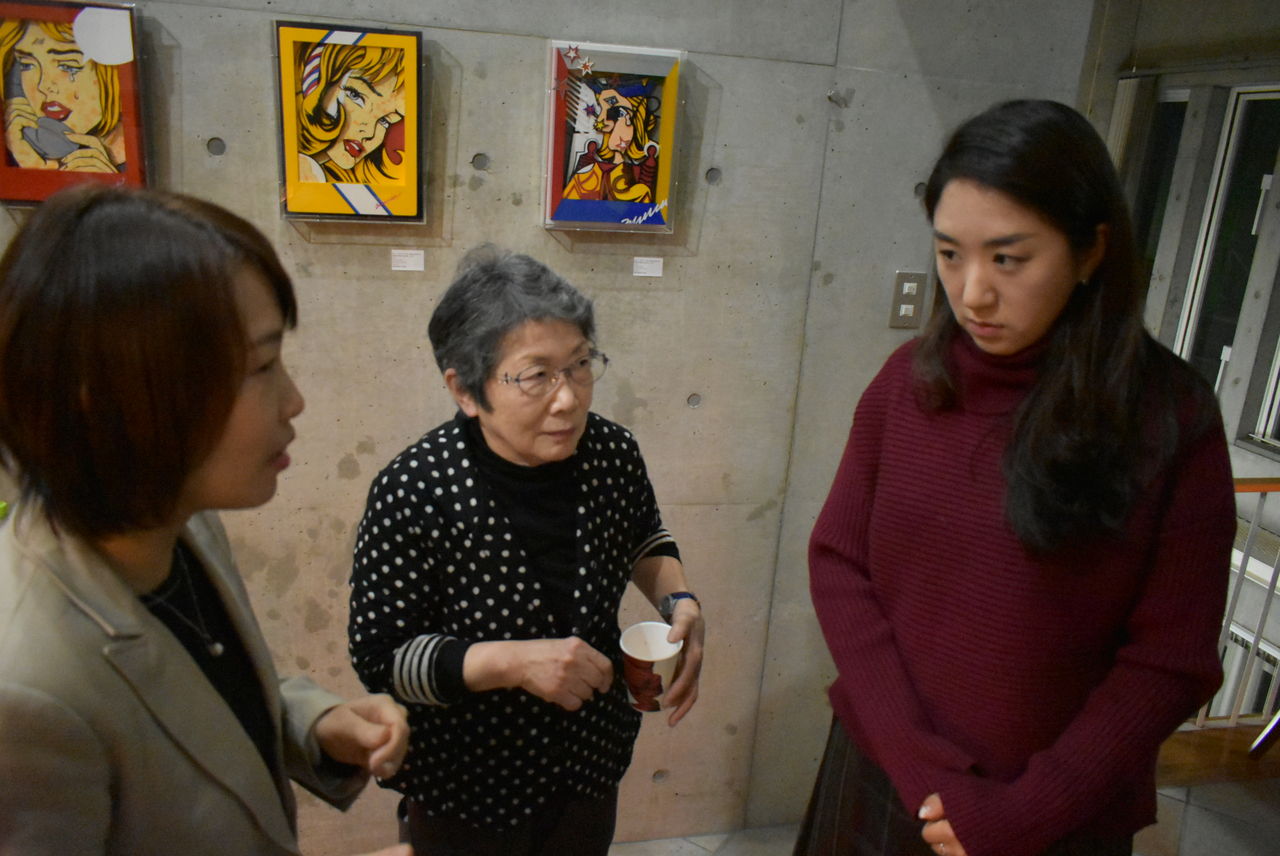 ハさんの右に座っておられるのは彼女の旦那様。プロのデザイナーで、今回の企画展のカタログはこの方の手によるものです。
