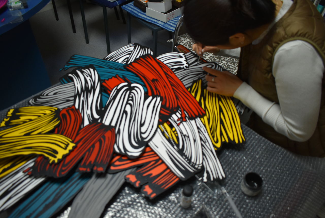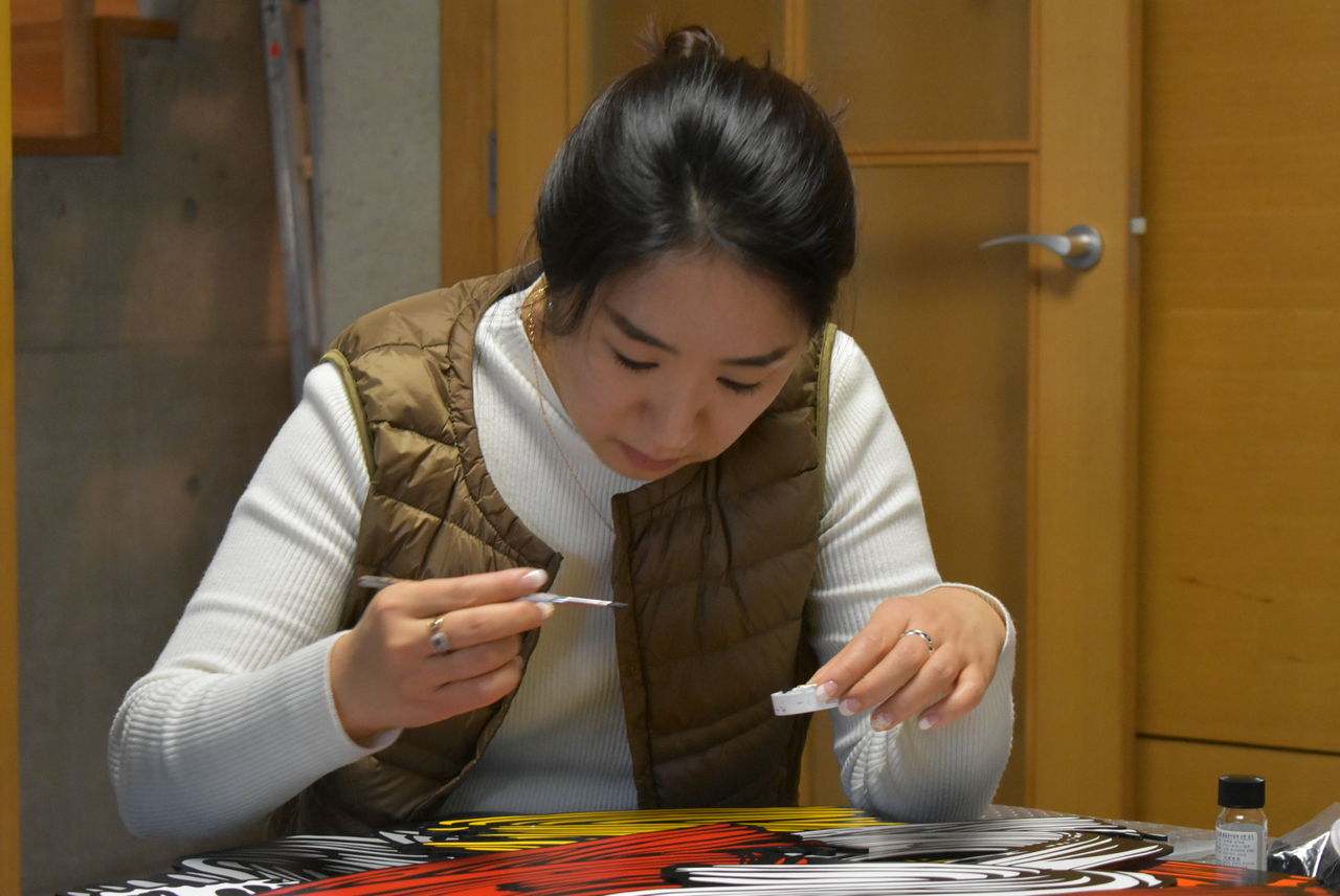 設営日に来廊して、分解した状態で届いた新作を組上げる作家のハ・ミョンウン(HA Myoung-eun)さん。