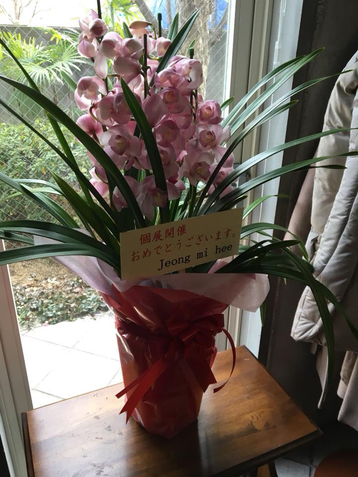 当日ギャラリーに到着して、まず最初に歓迎してくれたお花のプレゼント。「ミヒ、本当に愛してる❤️」