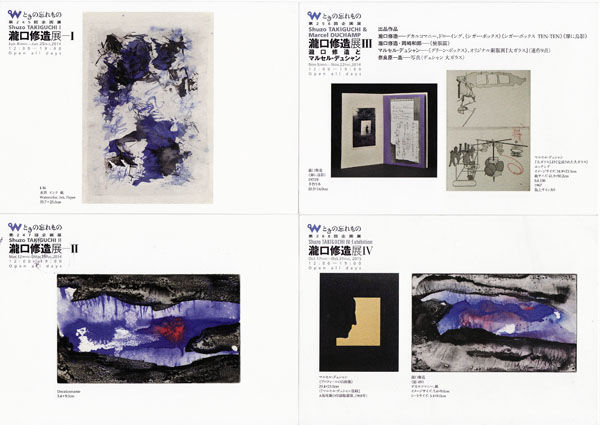最後に、近年開催された画廊における瀧口修造展をいくつか紹介しておきたい。瀧口の作品に直に接する機会を得るには画廊の果たす役割が重要だと思うが、東京では「ときの忘れもの」が2014年から2015年にかけて「瀧口修造展」を4回開催している。残念ながらいずれも見には行けなかったが、これほど積極的に取り上げている所は他に無く、合わせて立派な図録も刊行されている。