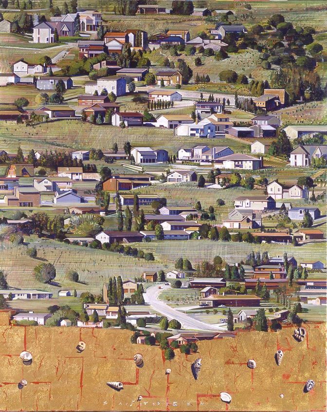 関根は多摩美術大学で絵画を学びますが、よく知られているのは「もの派」を代表する作家であるということです。それを決定づけたのは1968年に神戸須磨離宮公園現代彫刻展に出品された《位相―大地》でした。これは地面に高さ2.7m、直径2.2mの円柱形の穴を掘り、掘った土で同型の円柱を大地の上に構築するという作品でした。スケールはもちろんのこと、多くの人がその圧倒的な存在感に度肝を抜かれました。そうした作品により、関根はむしろ彫刻家として名を知られるようになりました。またパブリックアートなどの言葉が今ほど普及する前から「環境美術」と呼ぶ、周辺環境との調和を図った作品を設置し、時には環境デザイナーのような仕事をしてきました。自身で「環境美術研究所」を設立し、単なる彫刻にとどまらない、環境と一体化した作品への取り組みを積極的に行ってきました。当館では、そうした側面に光を当てた内容で、公立美術館において2003年に初の個展を開催したこともあり、関根を「環境美術家」と表記しています。