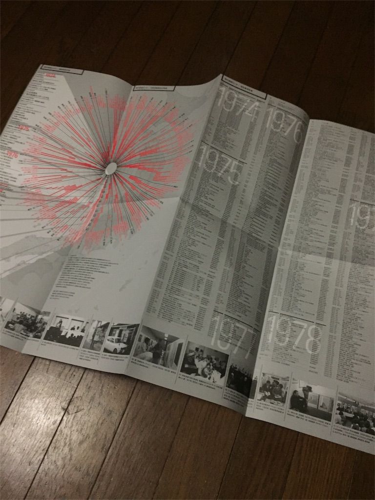 テキスト・ブックにはエディション作品や刊行物の目録、関係者へのインタビューが、ヴィジュアル・ブックには図版が収められている。年譜と地図が巨大な一枚になっているアトラスを見るとこのプロジェクトの大きさ・熱量・密度がよくわかる。