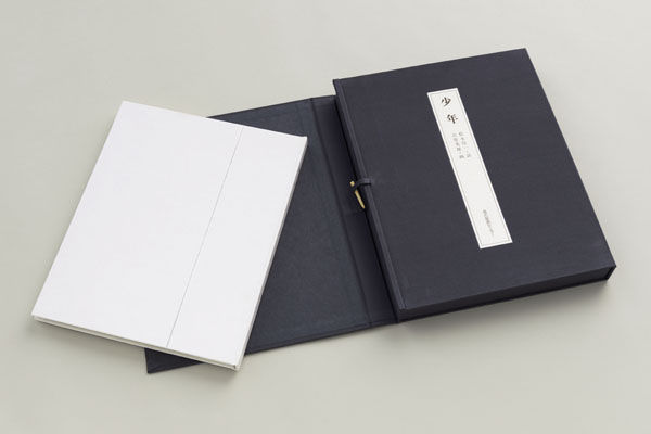 全ての折丁のランゲットを接着したあと、表装材でおおい、装飾を施す。和装本から着想を得た製本形態(下図参照)。