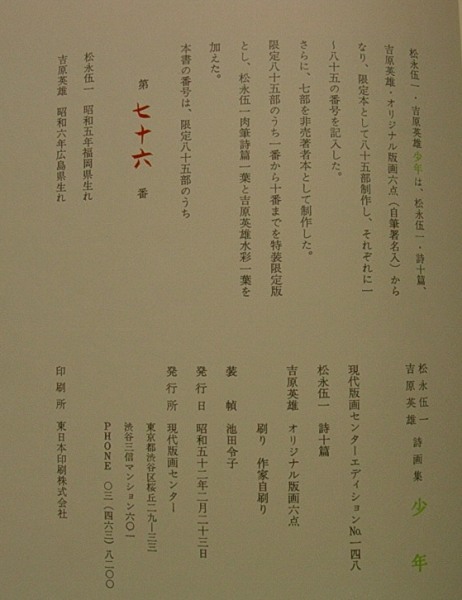 私たちが手がけた最初の詩画集が吉原英雄先生との「少年」でした。