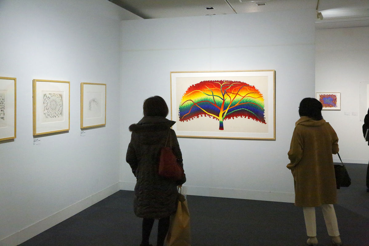 会場に入るとまず展示されているのは靉嘔のシルクスクリーンだった。3色で摺った「I love you」、多色の「大きな透明な木」をはじめ、どの作品も今刷り上がったばかりのように初々しい。靉嘔といえば誰しもがあの虹色を思い浮かべると思うが、改めて「こんなに美しかったのだ!」と驚かされる。これこそ実作に接した者のみが抱くことのできる感動に他ならず、図録や画集を見ただけでは決して味わうことができないだろう。