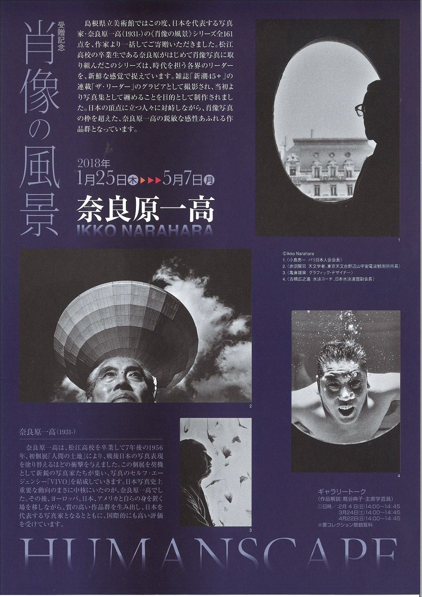 島根県立美術館ではこの度、日本を代表する写真家・奈良原一高(1931-)の《肖像の風景》シリーズ全161点を、作家より一括してご寄贈いただきました。松江高校の卒業生である奈良原がはじめて肖像写真に取り組んだこのシリーズは、時代を担う各界のリーダーを、新鮮な感覚で捉えています。雑誌「新潮45+」の連載「ザ・リーダー」のグラビアとして撮影され、当初より写真集として纏めることを目的として制作されました。日本の頂点に立つ人々に対峙しながら、肖像写真の枠を超えた、奈良原一高の鋭敏な感性あふれる作品群となっています。