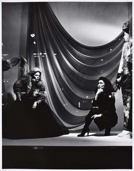 奈良原一高≪森英恵 ファッション・デザイナー <肖像の風景>より≫1985年この作品は、写真家・奈良原一高(1931-)の≪肖像の風景≫(1985)のなかの1点。日本を代表する各界のリーダー30人を紹介する連載「ザ・リーダー」が、月刊誌「新潮45+」の創刊号から始まり、奈良原はそのグラビア撮影を新潮社より依頼された。それまで肖像写真をほとんど撮らなかった奈良原は、当初より写真集として纏めようと企図した。そして完成したのが『肖像の風景』である。