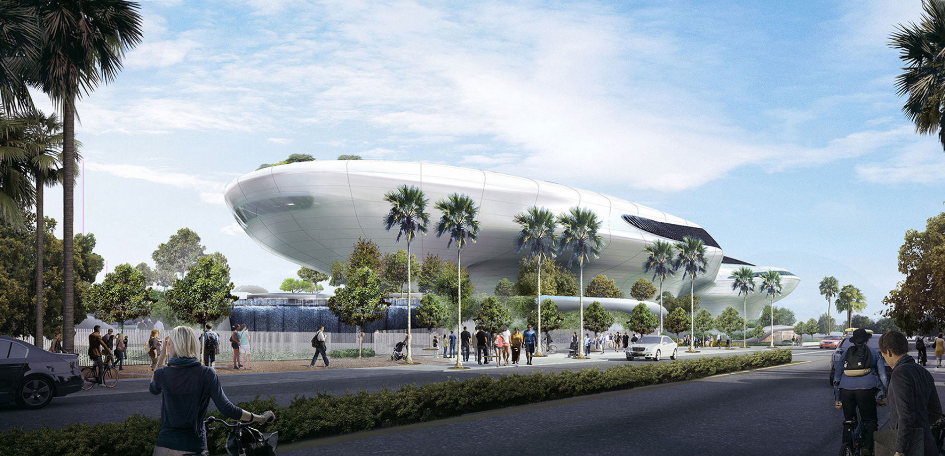 設計は世界的に活動し、カナダ・トロント郊外の「アブソリュート・タワー」等の有機的なデザインで知られる中国の建築家集団MADアーキテクツ。今回のデザインも曲線が多用され、創立者のイメージもありまるで宇宙船のように見えます。