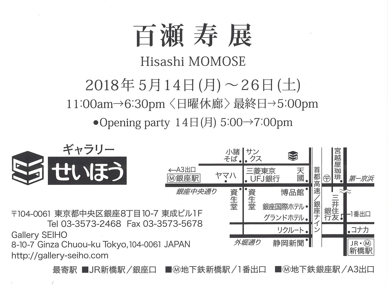 ●盛岡の百瀬寿さんが銀座のギャラリーせいほうで個展を開催します。