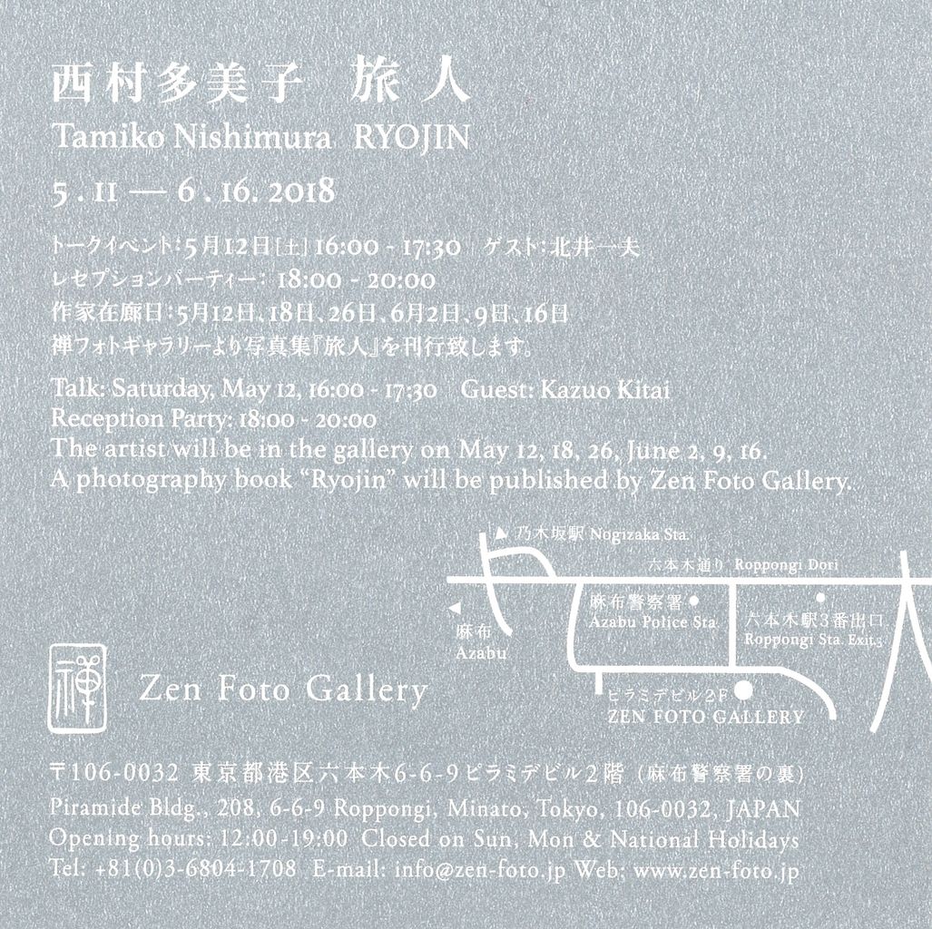西村多美子さんが写真集『旅人』を刊行するのに合わせて六本木のZen Foto Galleryで個展を開催します。