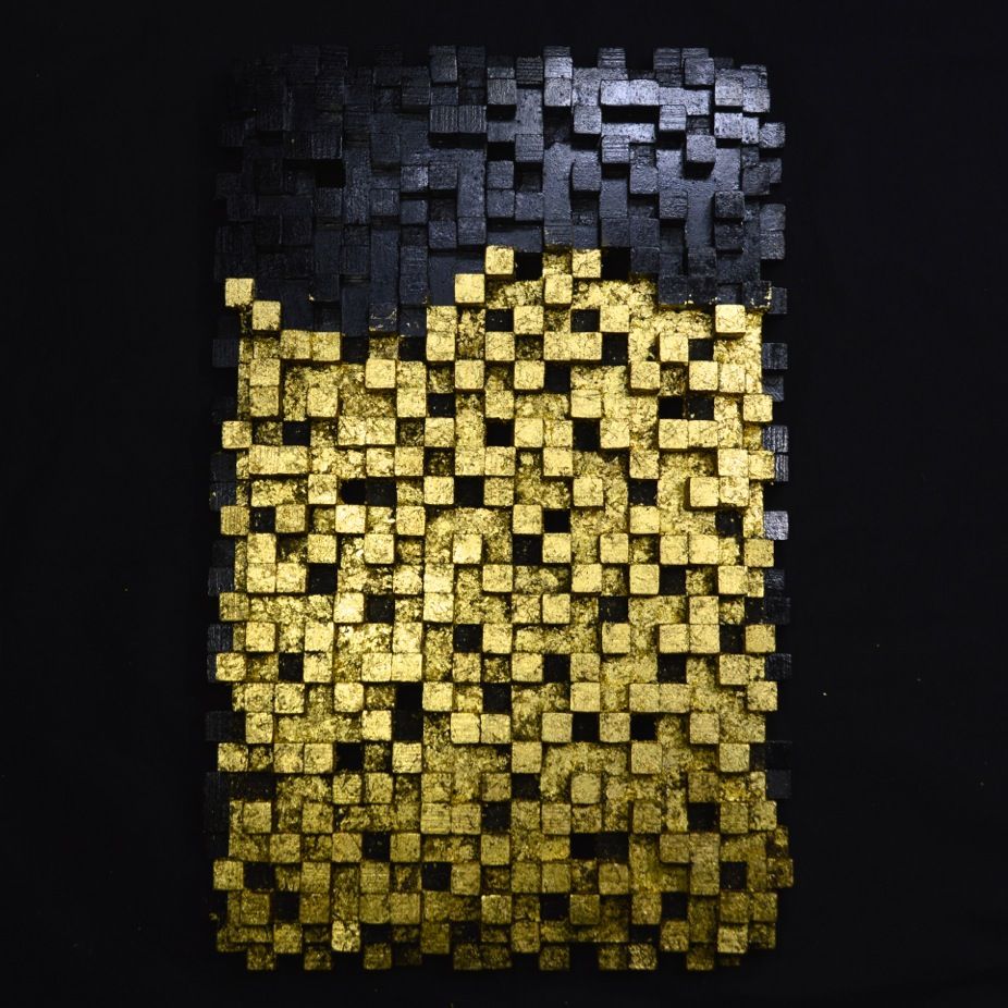 箔画(紙、漆、金・銀・プラチナ箔、石炭、樹脂、アクリル絵具)