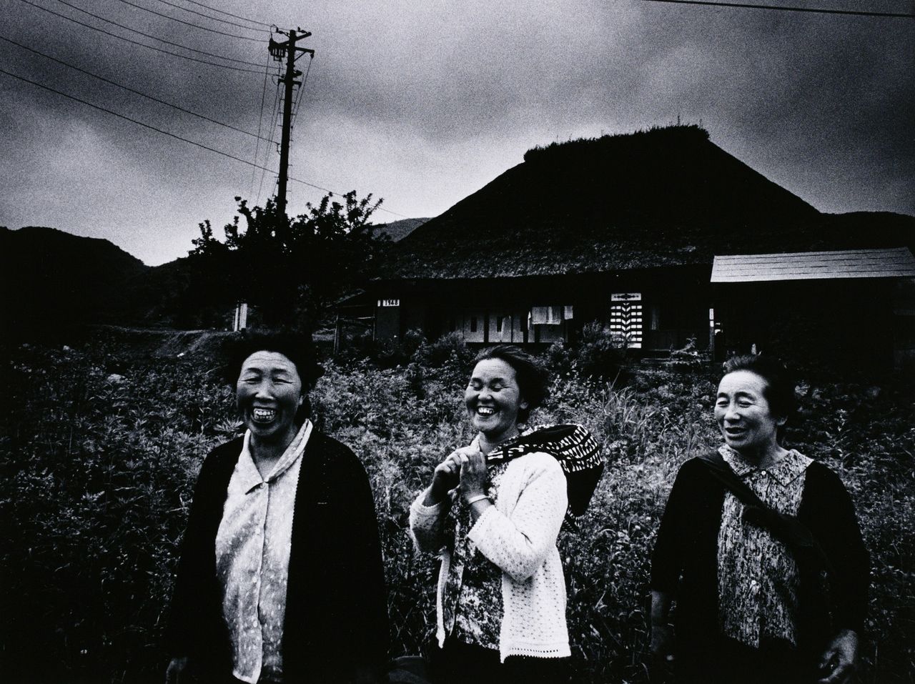 三人は連れ立って村の婦人会にでもいくような雰囲気で歩いている。みな顔をほころばせていて、二番目の人など笑いで破顔し、その勢いで髪が後ろになびいている。写真家がなにかおもしろいことを言ったのだろうか。そうではないだろう。カメラを向けたらいきなり笑ったのだ。写真に撮られることの滑稽さと晴れがましさ。そこに恥ずかしさが入り交じってこんな表情になってしまった。