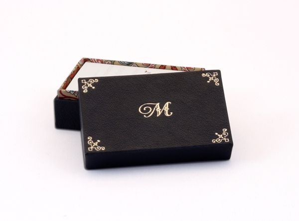 両面開きになる箱。総革装の、特に立体的なデコールがある本で、スリップケースに出し入れ出来ない場合に用いる。