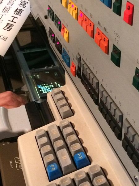 写植とは鉛の活字を組んでテキストを作ることだとばかり思っていたので、それまで抱いていたイメージがゼロに戻され、とても勉強になりました。活字を拾うように、ガラス板にびっしりと印字された文字の中から一つ一つ狙いを定めてタイプライターのように文字を打っていき、専用の用紙に写したものを暗室で現像してテキストを完成させます。写植用フォントは美しいものばかりで種類も多く、普段パソコン上ではお目にかかることができないものもたくさんありました。