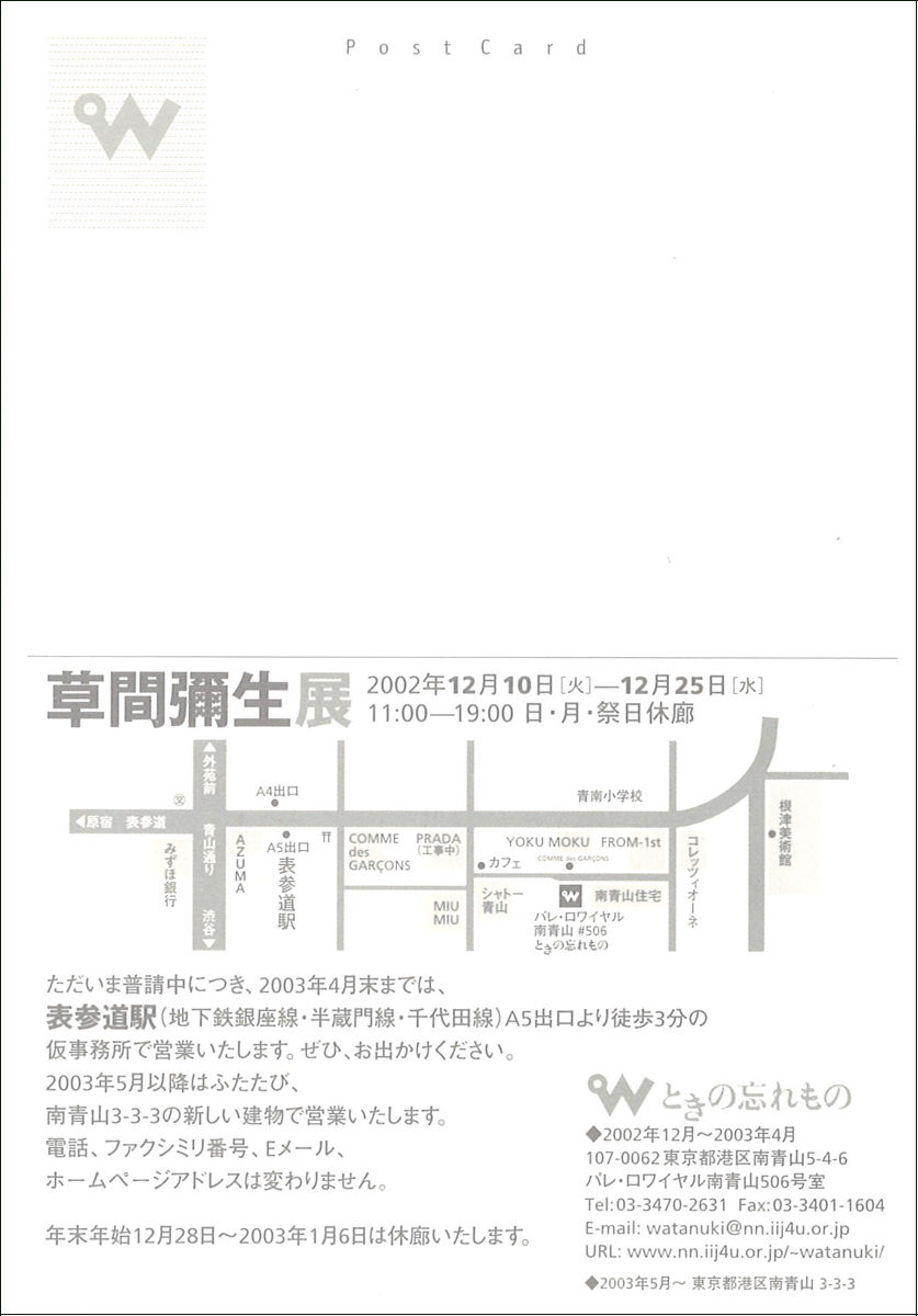 ●ときの忘れものは昨年〒113-0021 東京都文京区本駒込5丁目4の1 LAS CASAS に移転しました。TEL: 03-6902-9530、FAX: 03-6902-9531