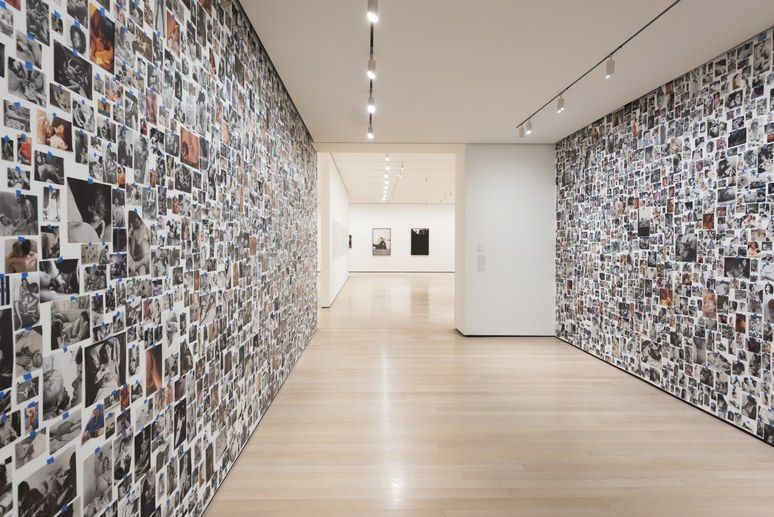 今回紹介するのは、アメリカの芸術家カーメン・ワイナント(Carmen Winant, 1983-)の『My Birth(私の出産(誕生))』(2018)です。この作品は、現在ニューヨーク近代美術館で開催されている展覧会「Being: New Photography 2018」(会期2018年8月18日まで)の中で、インスタレーションとして公開されている作品(図1)をもとに構成されています。この展覧会は、人間という存在を写真がどのように捉え得るのかということをテーマに、アメリカ国内外のさまざまな作家(主に、30代から40代前半の若手の作家)が出展しています。