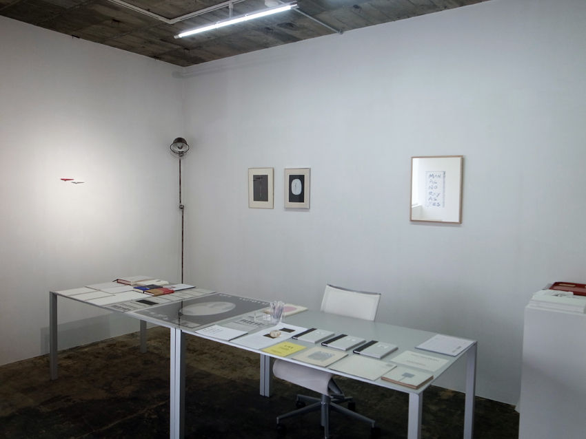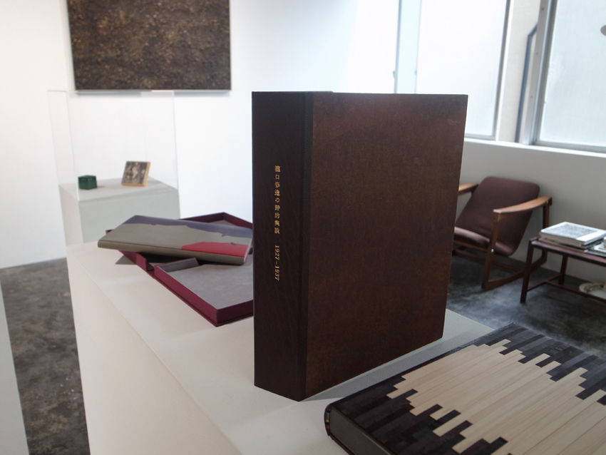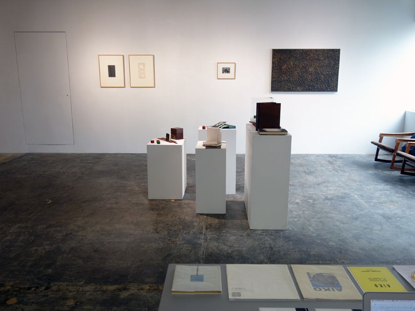 手前に造本作家グループの装幀本、後方に瀧口修造、宮脇愛子