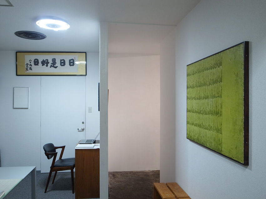 京都西陣、晴明神社近くの古いビルにあるART OFFICE OZASAで、6月2日から末日まで催された展覧会「瀧口修造 宮脇愛子 ca.1960」展は、作品と人との一期一会を物語る最高の場であった。しかし、場所は京都、昨今の積極的な広報とは別の次元で、ひっそりと画廊の扉は開かれていた。気づかないまま通り過ぎた人も多かったと思うが、なにげなく画廊の扉を押した人の幸せに祝福を贈りたい。このようにして宮脇さんの初期油彩を観ることは、もう出来ないとわたしは思っているので、展覧会を見逃された方々に展示の様子を捉えた写真をアップし、最高の場の一端を味わってもらいたいと願う(横道に逸れてしまうけど)。