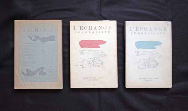 図5 『L’ÉCHANGE SURRÉALISTE』函(左)、赤版表紙(中)、青版表紙(右)