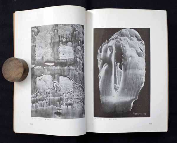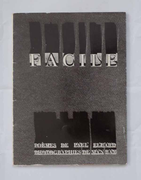図7 瀧口夫妻のデカルコマニー(左:綾子夫人、右:瀧口本人)一般に、言葉とイメージとが組み合わされる場合、小説と挿絵のように、どちらか一方が主となり、他方がそれを補うというのが一般的と思われますが、瀧口が目指していたのは、イメージと言葉とが互いに触発し合いながら、全体としても統一感を持つようなあり方だったようで、早い時期から「超現実主義を通して、詩と絵画とが握手する」(「超現実主義絵画の方向について」、「詩法」1935年8月)と述べていたとおりです。その理想的な実例は、マン・レイとエリュアールの『ファシール』(1935年。図8)だったのかもしれません。「写真と超現実主義」(「フォトタイムス」1938年2月。図9)の図版に以下のようなキャプションを付けています(新字新仮名遣いに変更)。