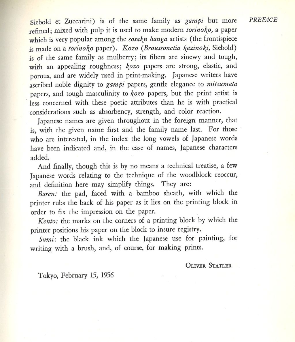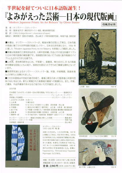 スタットラーが1956年に刊行した『Modern Japanese Prints: An Art Reborn』は、創作版画愛好家のあいだでは長くバイブルとも目されてきた日本の現代版画の解説書です。