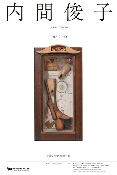 1959年夫の内間安瑆と渡米後はニューヨークに永住し、制作を続けます。1966年頃から、古い切手、絵葉書、楽譜、貝殻や鳥の羽などが雑誌の切抜き等でアレンジして封印したボックス型のアッサンブラージュやコラージュの制作に取り組み、全米各地の展覧会や日本での個展での発表を続けました。1982年からは体の自由を失った夫を18年間にわたり献身的に看病します。介護をしながらの限られた時間の中でも制作は続けられました。作品は「夢、希望、思い出」をテーマにしたものが多く、日常の「モノ」たちの組み合わせから内間俊子の人生の記録が表現されています。