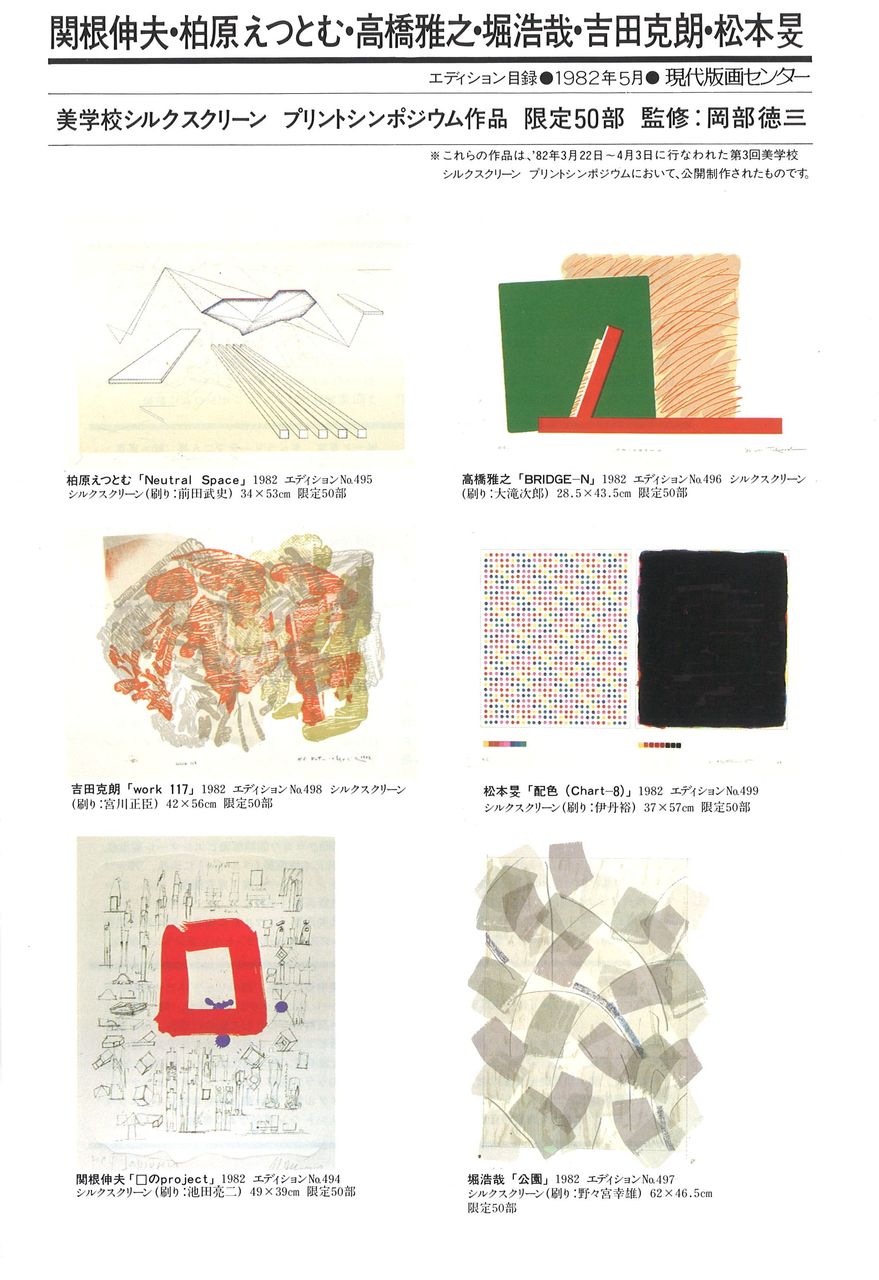 <後援:現代版画センター>とあるのは、出来上がった作品を現代版画センターが買い取ってエディションにすることで、美学校の経済的支援にもなるという岡部さんの目論見でした。
