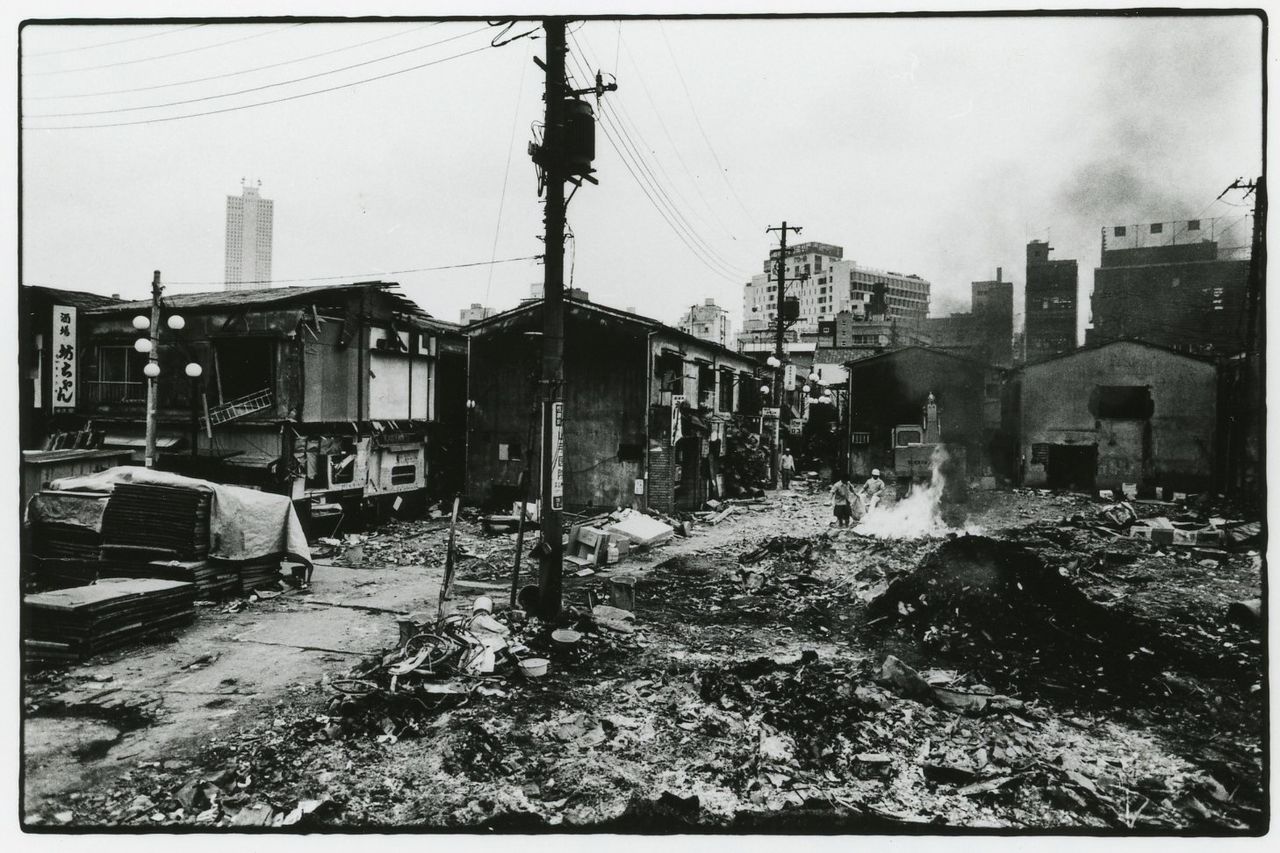 世田谷美術館で開催された「東京スケイプ(Tokyoscape: Into the City)」展(2018年7月21日~10月21日)にも出品されたこのシリーズをあらためて見ると、都市観察者としての平嶋の眼差しのあり方が浮かび上がってくる。写真に写っているのは、バブル経済が大きく膨張しつつあった1980年代半ばの東京とその近郊の眺めであり、戦前からの古い街並みは「開発」という名の下の「街殺し」によって軒並み取り壊され、消失しつつあった。平嶋はその光景を、ことさらに感情移入するわけではなく、広角気味のレンズで平静に距離を保って撮影していく。とりわけ彼の関心を惹きつけているのは、街のディテールであり、視覚的情報だけでなく触覚的情報を取り込んでいることで、あたかも平嶋や西井に同行して東京を彷徨っているような気分になってくる。黒白のコントラストをやや強めて、どちらかといえば闇(影)の領域に寄り添うように撮影しているのも、平嶋の写真術の特徴といえるだろう。