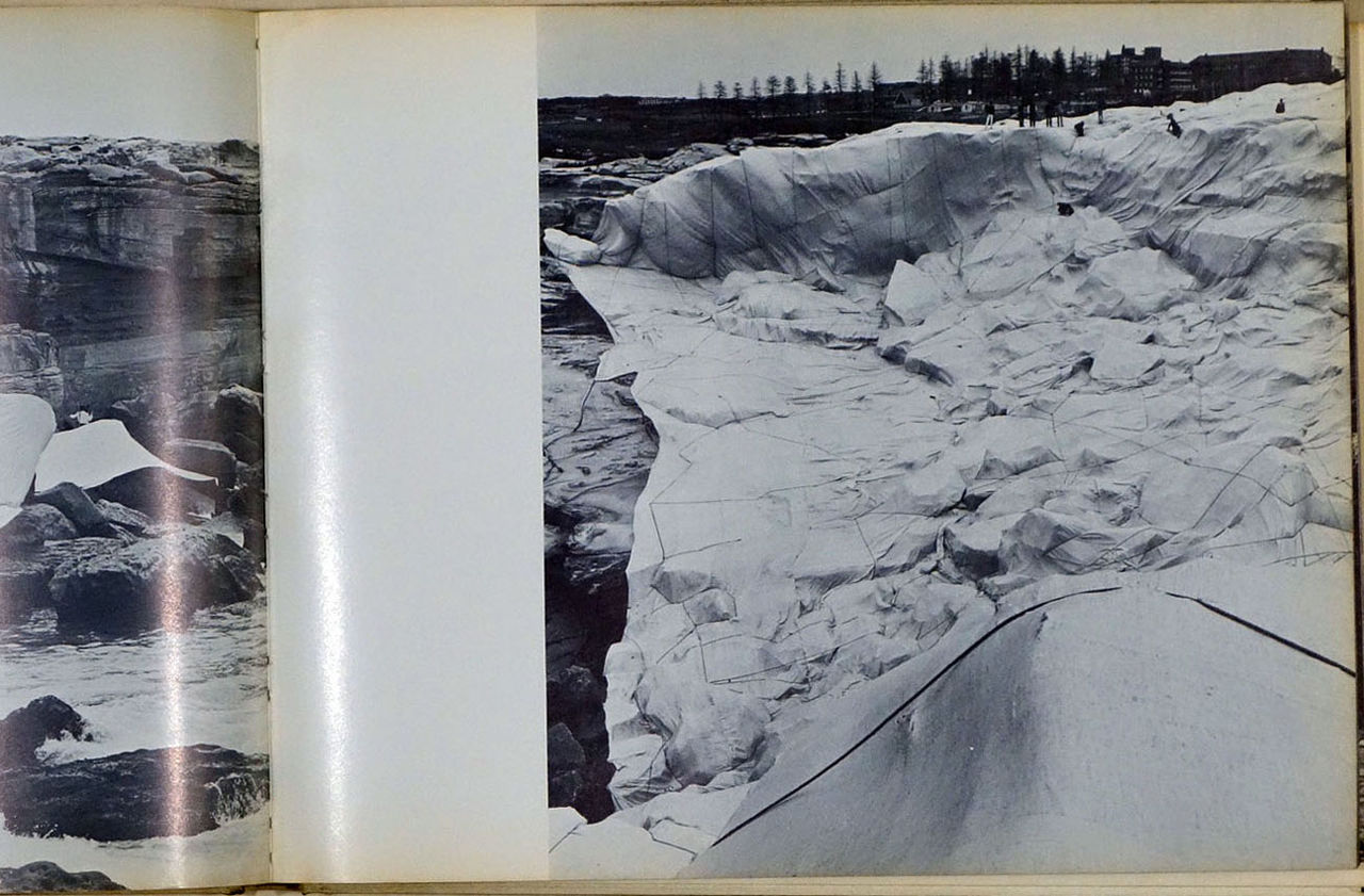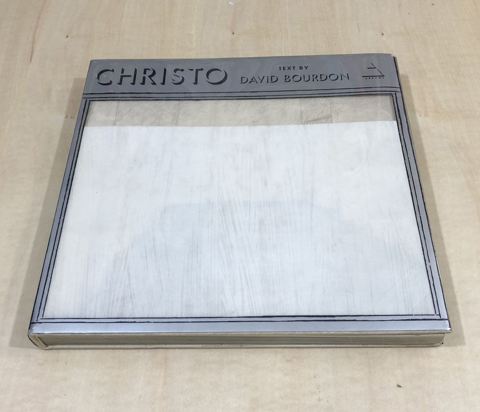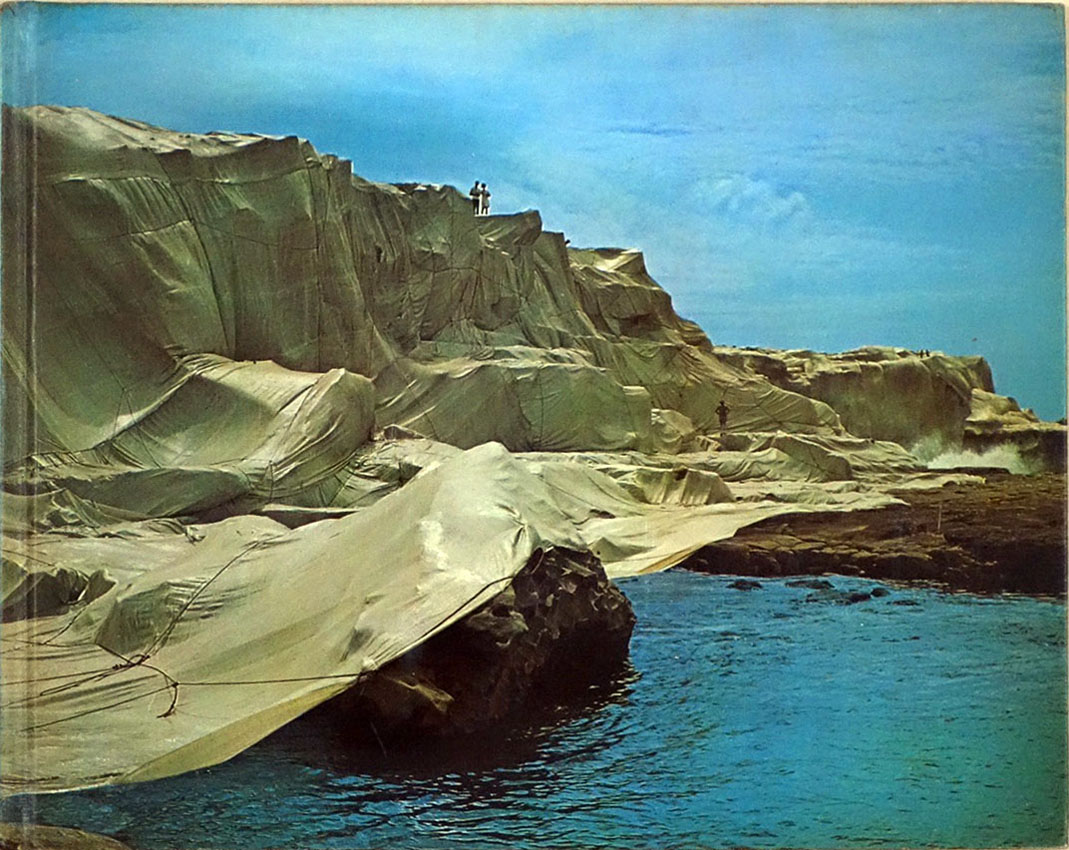 「覆われた海岸線」の記録集が出された翌年の1970年、世界最大の美術書出版社である、ニューヨークのエブラムスから、28x30センチと大判で、厚さも3センチを超える本格的なクリストの作品集が刊行されました。初期の「包まれたオブジェ」や「パッケージ」から、当時スタートしたばかりの「ヴァレー・カーテン」のドローイングまでが収録されています。注目したいのは、前述した「5600立方メートルのパッケージ」と「覆われた海岸線」が、それぞれ30頁、64頁を使って紹介されている点でしょう。ここでも、それぞれのドローイングや実現したプロジェクトの写真に加えて、準備段階の写真が多数含まれています。