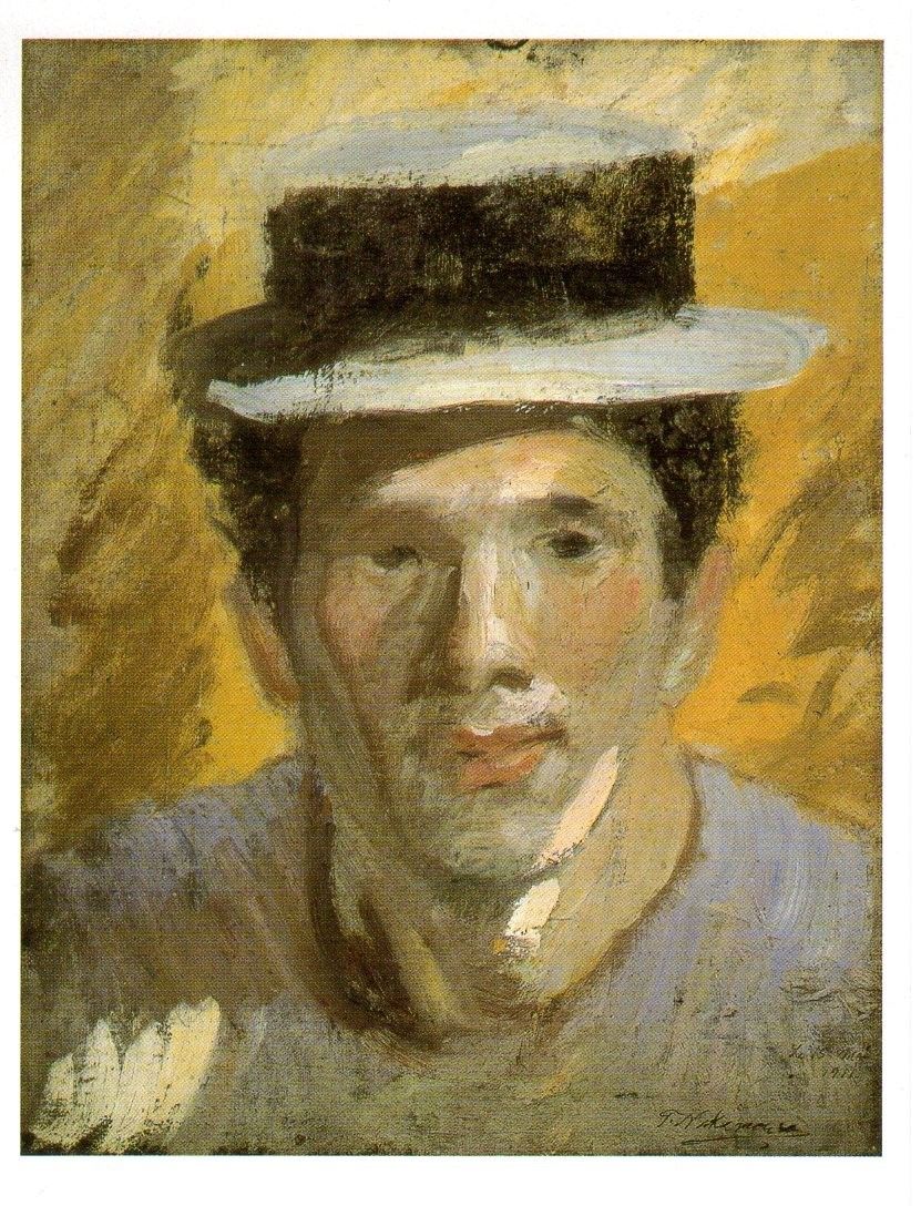 「麦藁帽子の自画像」(1911年)大正12(1923)年9月、関東大震災でアトリエが傾いたが、彜自身は無事であった。しかし結核は確実に進行しており、11月には発熱して病床に就いた。大正13(1924)年12月24日突然の喀血による窒息のために37歳の生涯を閉じたのだった。12月27日に落合葬祭場で荼毘にふされたのだった。主を失ったアトリエの空間はさびしさを内包しているように今も感じる。