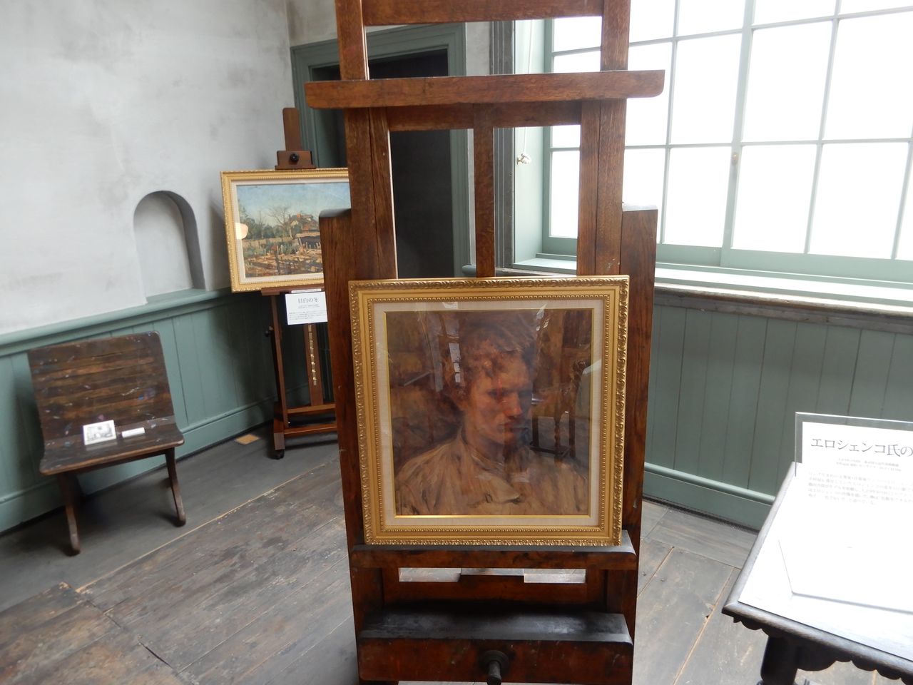 中村彜のアトリエの近くには美術での友人たちが多く住んだ。曾宮一念であり、鶴田吾郎であり、鈴木良三であった。三人はともに下落合の住人であった。大正9(1920)年、目白駅で盲目のロシア詩人をみかけた鶴田吾郎が絵のモデルになってくれるよう詩人に頼んだ。詩人の名前はワシリー・エロシェンコといった。どういう経緯であったのか、鶴田はエロシェンコを中村彜アトリエに案内し、鶴田と中村の二人で描くことにしたのだった。このときに描かれた「エロシェンコ氏の像」は10月に開催された第二回帝展に出品されたのだった。