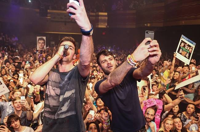 (図5) ライブの観客と共に、自撮りをするThe Chainsmokersの二人