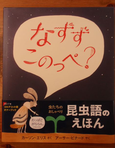 今回ご紹介するのは、そんな中のひとつ。タイトルは「なずず このっぺ?」。はっ?何それ?と思った方は正解。「なずず このっぺ?」とは「何、それ?」という意味です。原作者はカナダ人で、オリジナルの本は英語で書かれている、、、のだが、なにしろ日本語版の帯に書かれている通り、「昆虫語のえほん」なのである。つまり、オリジナルは英語の昆虫語、ということになる。この本の楽しさ、面白さは、昆虫語や虫たちの動作・表情の豊かさにあるのだけれど、ディテールに様々な発見があり、何度みても飽きない。