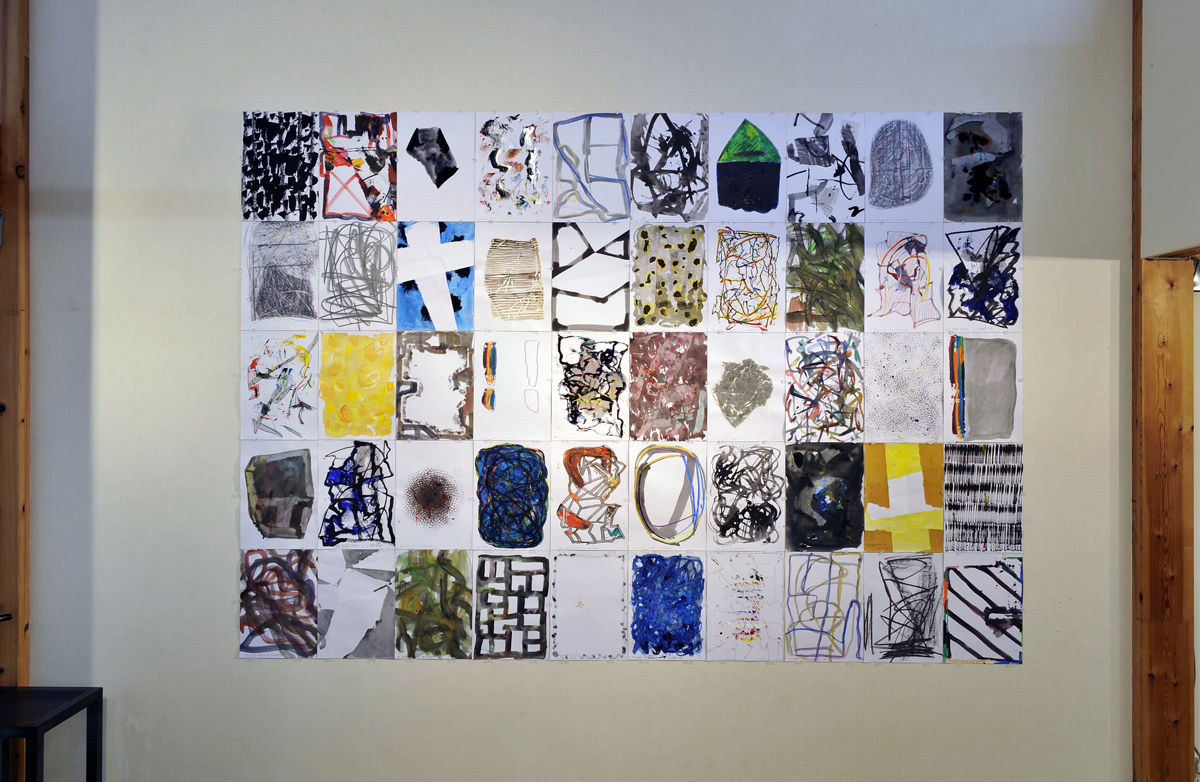 「毎朝欠かさず10枚描く」という堀尾先生のドローイング、アトリエに積んであった4万点の中から選りすぐりの50点。