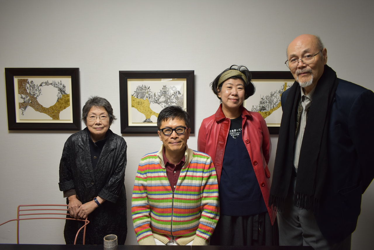左から、社長、名越康文さん、吉本ばななさん、画廊亭主