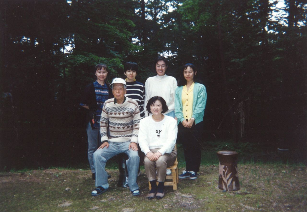 会食会にて、右から綿貫令子、綿貫不二夫、靉嘔先生ご一家(撮影:堀宜雄)*久保講堂の空間については乃木坂46というお嬢さんたちの 『いつかできるから今日できる』プロモーション映像をご覧ください。
