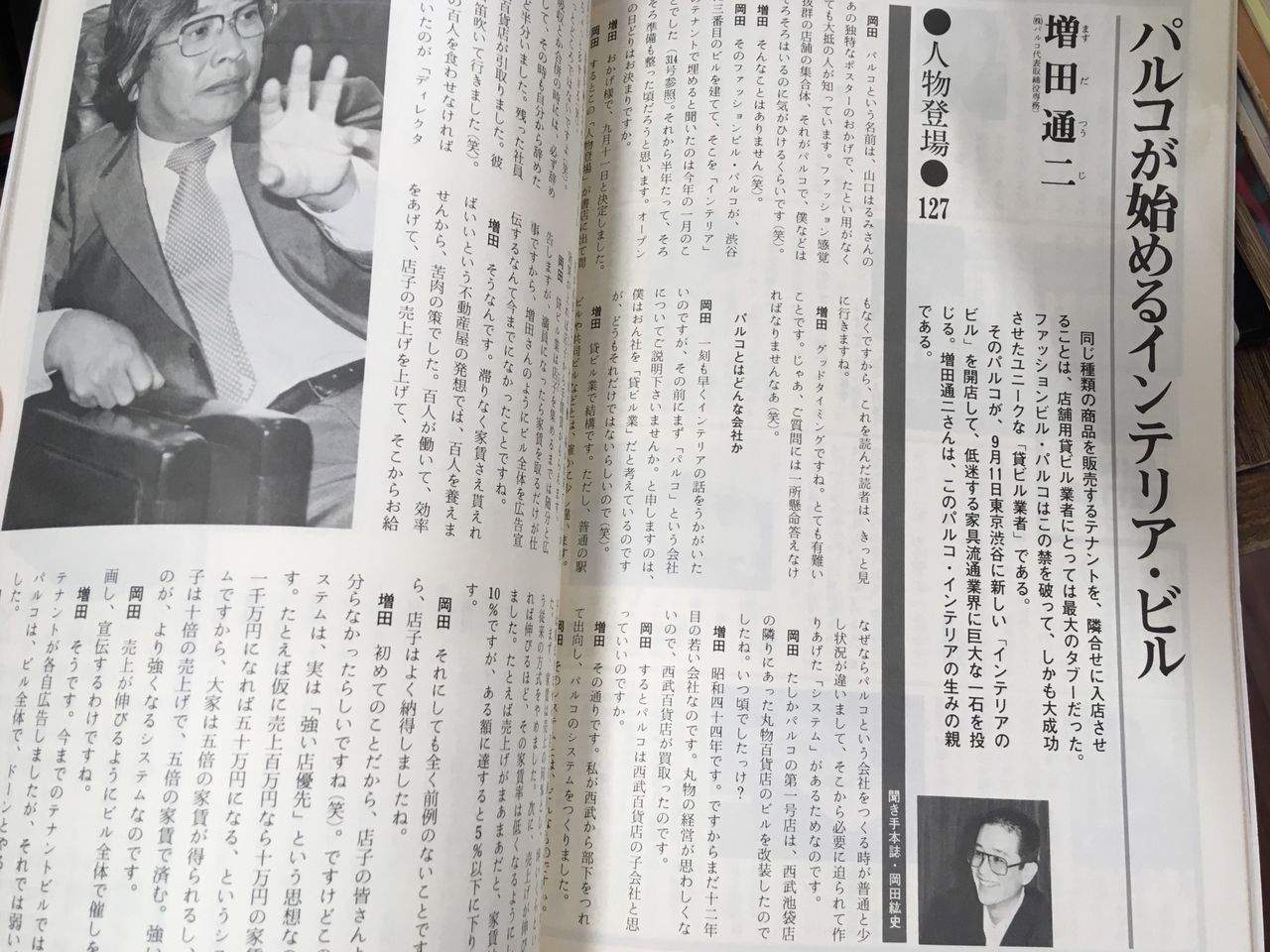 食い入るように読んだのは、「西友『無印良品』物語」や「増田通二 パルコが始めるインテリアビル」など。今では当たり前のようなショップや企画が、同時代的にどういう記事になって、どのように捉えられていたのか、その臨場感を味わうのが少し古めの雑誌を読む醍醐味でもあります。