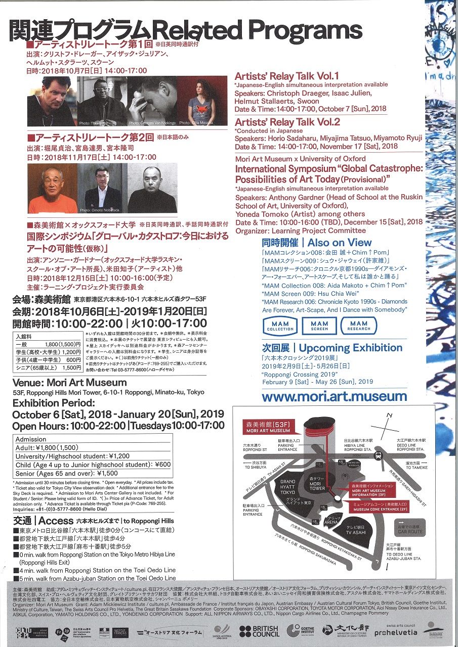 最近は雑誌や新聞での今週今月の展覧会紹介記事ではもう、ほどよく捌ききれない展示企画が多い。コラムの形式を変える必要があるかもしれない。この「カタストロフ」から考えはじめることの大きさを、先はまったく見えないが感じはじめている。