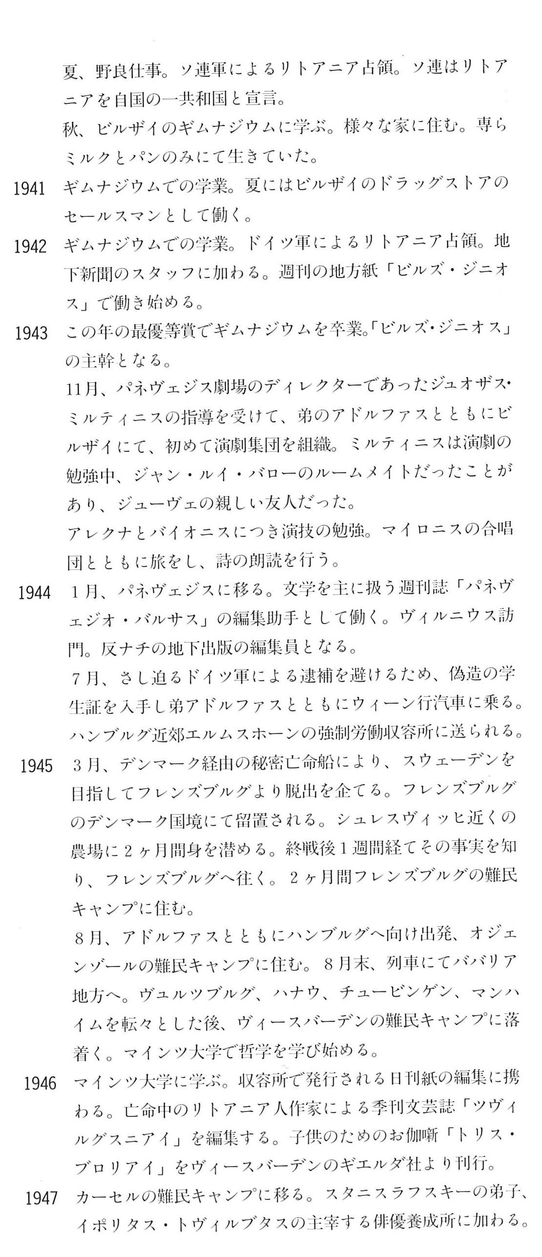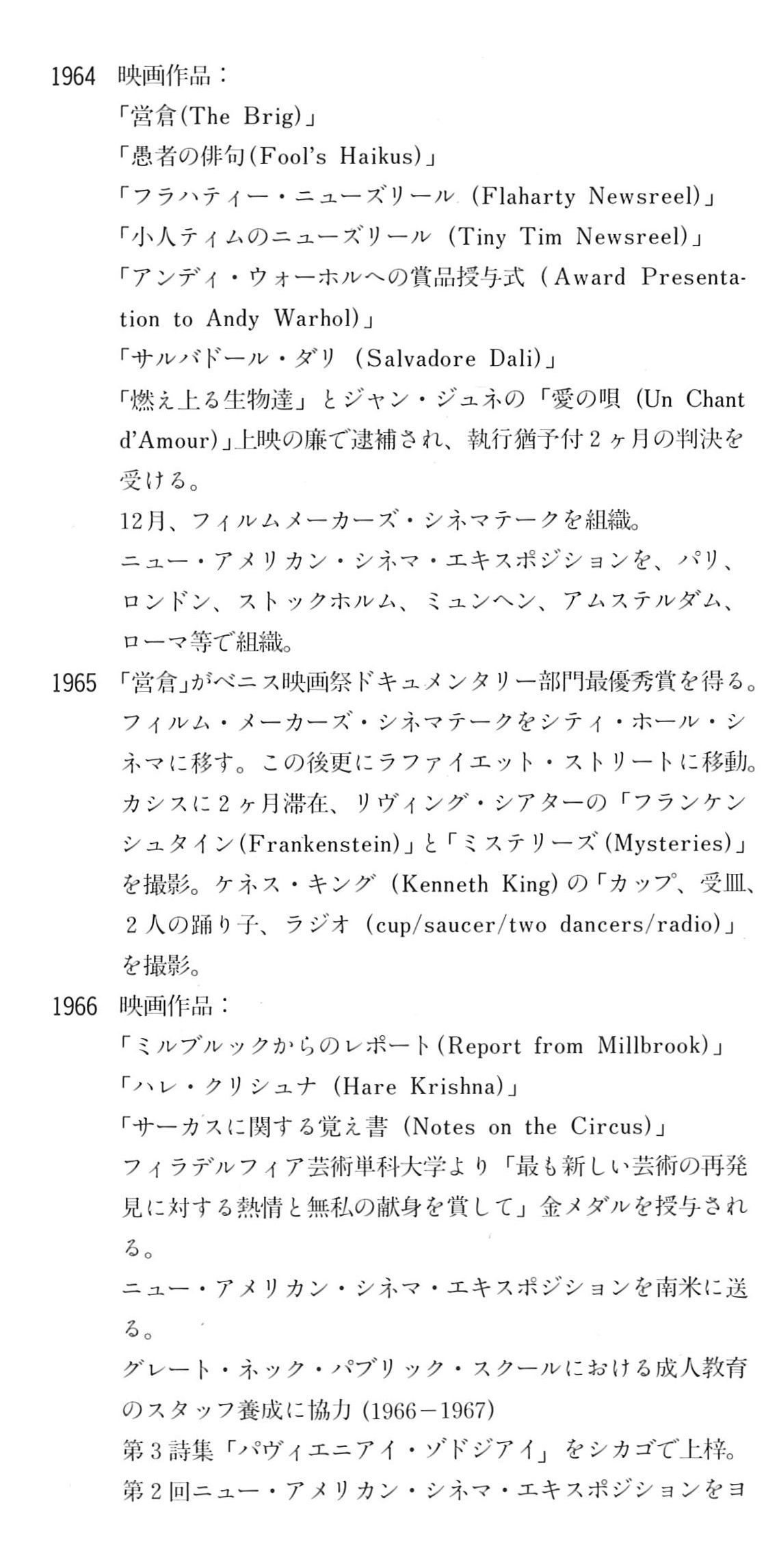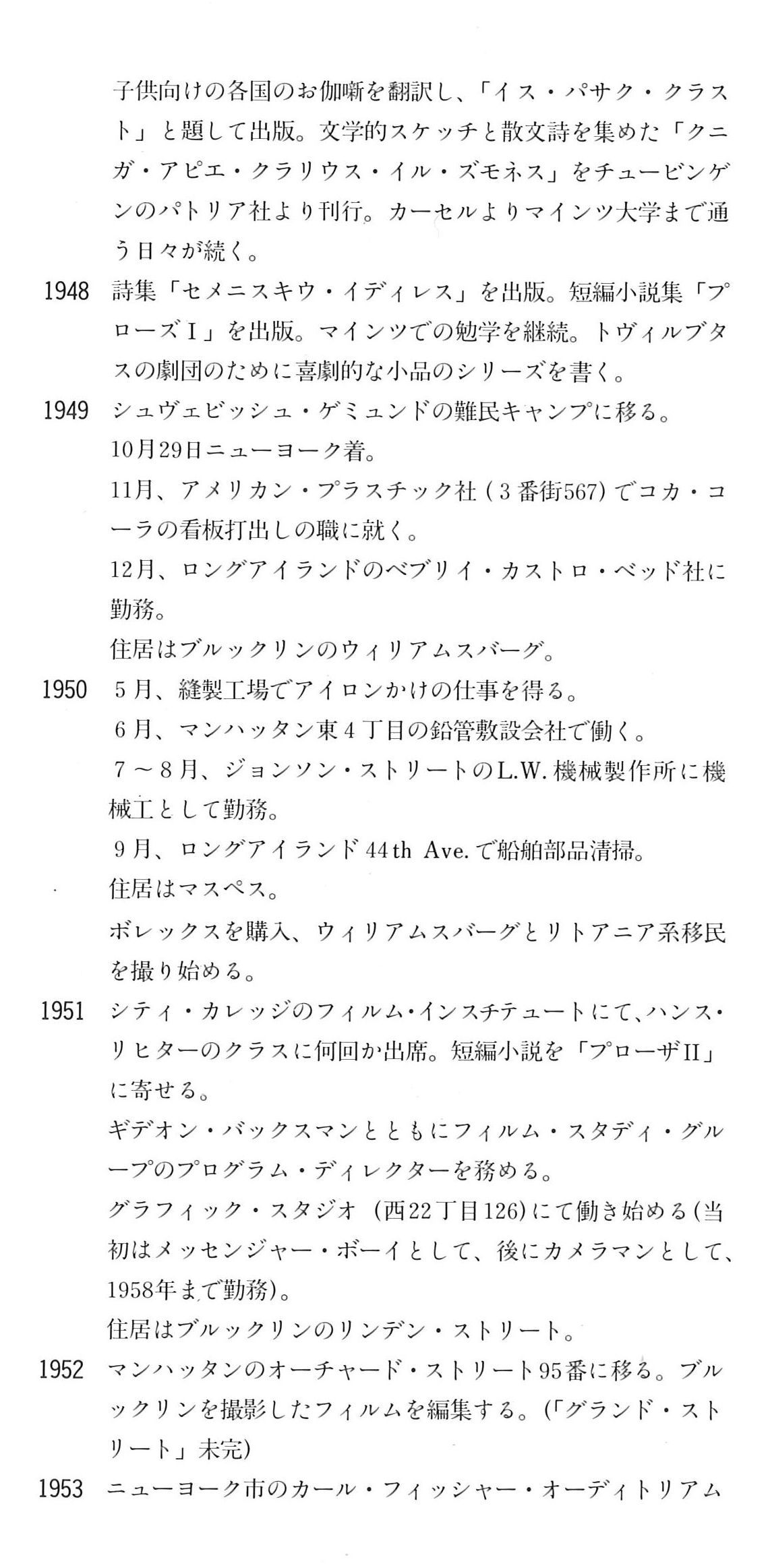 続いて掲載したメカスさん自身による略歴/(自)伝記的ノートがいま読み返してもひしひしと迫るものがあります。