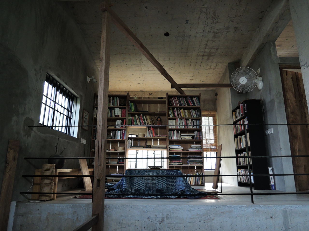 DSCN5732二階の書斎部分。新たに本棚が敷設されて、先ほどの庭に張り出す小室と分けられている。モノの密度が高まるのは家にとっては嬉しいことだとも思う。