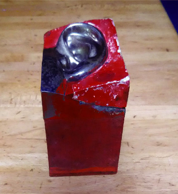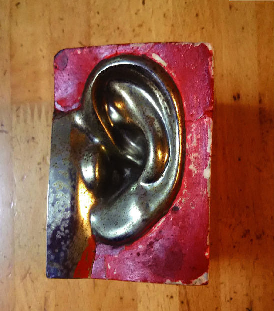 耳をグリット状に箱に入れこんだ作品の一部。