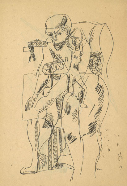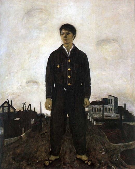 大川美術館には多くの人物画がコレクションされている。松本竣介というと都市風景を思い浮かべてしまうが、人物画も魅力的だ。やはり落合地域の住人である画家の柳瀬正夢が編集著作した『無産階級の画家 ゲオルゲ・グロッス』(1929年 鉄塔書院)を愛読し、そのなかの人物像を模写し、研究したことが知られている。竣介の絵にはグロッスのような直接的な社会性、批判性はないが、線描の画法はグロッスの影響を感じさせるものがある。昭和13(1938)年のことである。