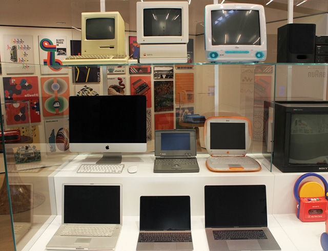 常設展に展示してある歴代マッキントッシュの数々。隣にはソニーのブラウン管テレビとキッズ向けウォークマンも。ガジェット好きにはたまらない空間です。