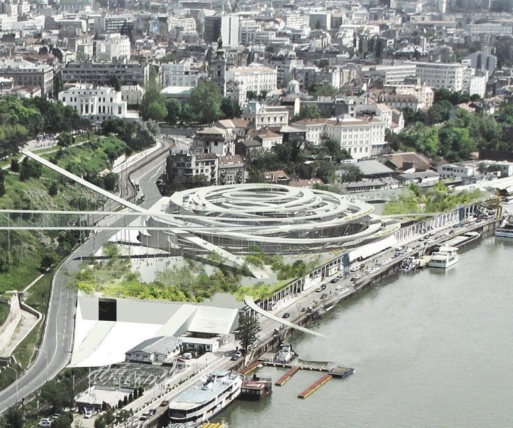 《べトンハラ・ウォーターフロンント・センター設計競技1等案、完成予想図》