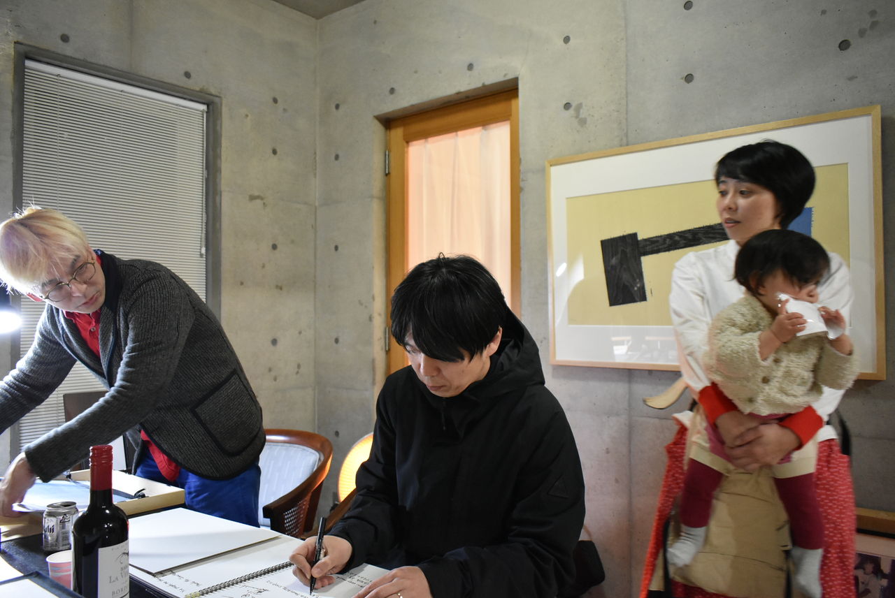 DSC_0843亡きメカスさんへのメッセージを書き記す参加者。
