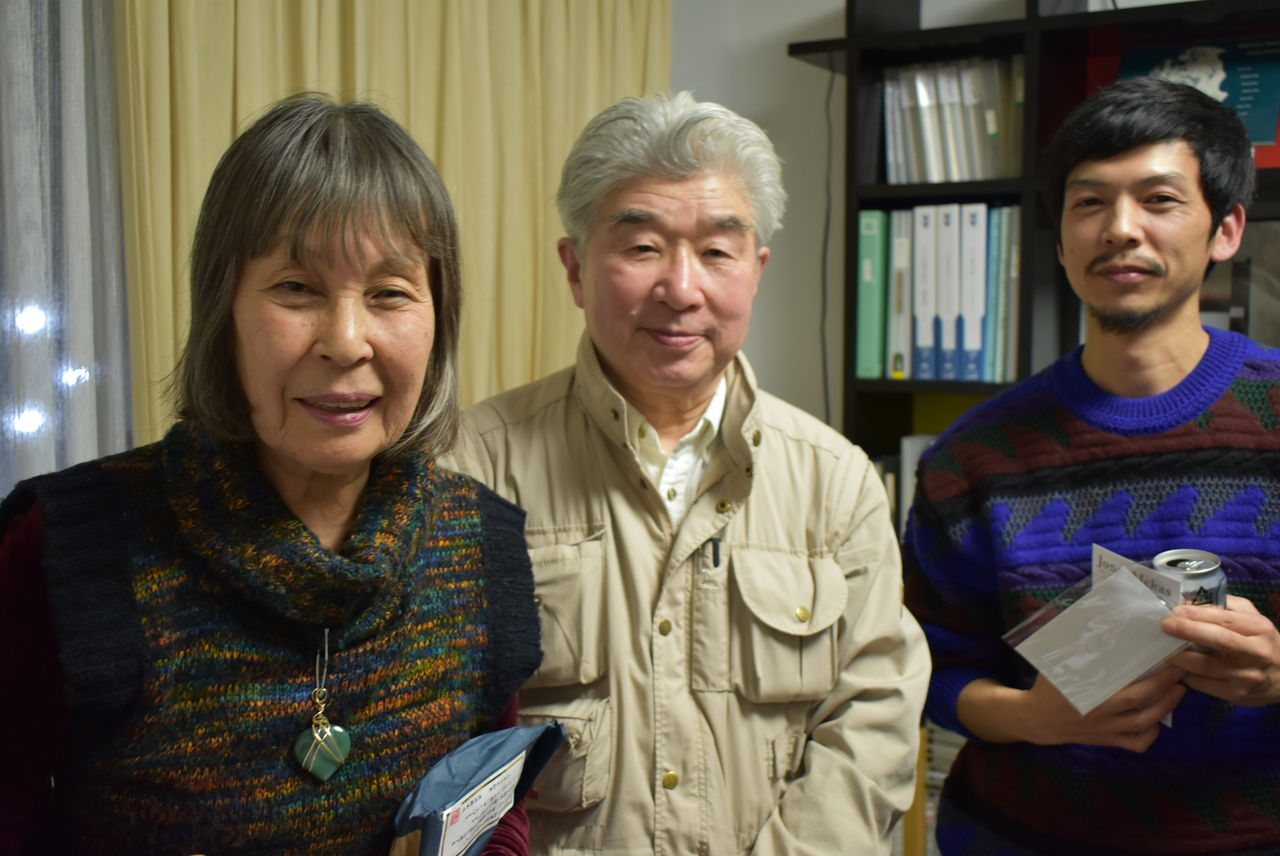 左からメカス日本日記の会、『ジョナス・メカス―ノート、対話、映画』の翻訳者・木下哲夫先生。フリージャーナリスト、『メカスの映画日記』『メカスの難民日記』の翻訳者・飯村昭子先生。そして『都市住宅』創刊編集長、『メカスの映画日記』の装丁者・植田実先生。
