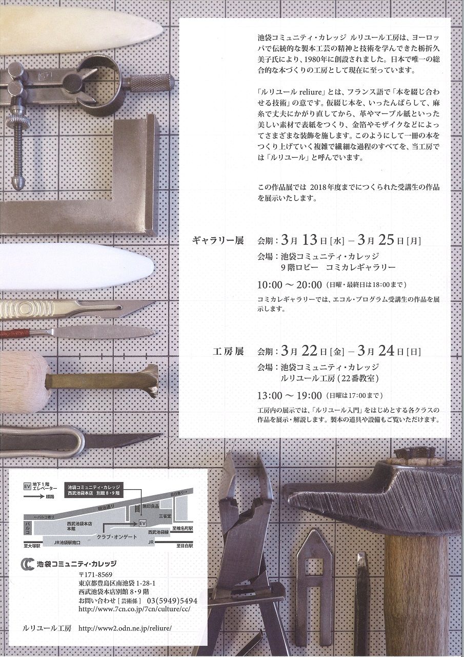 場所:池袋コミュニティ・カレッジ[ルリユール工房](東京都豊島区南池袋1-28-1 西武池袋本店別館9F)